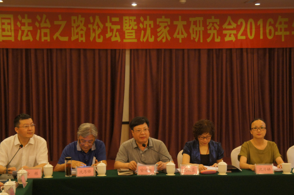 学术研究是研究会的重中之重。沈家本研究会自成立以来,紧紧依靠各团体会员,充分发挥广大个人会员的作用,每年确定一个主题,组织开展论文征集和课题研究。去年7月9日,沈家本研究会联合我校社科联、中国政法大学沈家本研究中心、湖州市司法局、湖州市法学会等单位共同主办“沈家本与中国法治之路”论坛暨沈家本研究会2016年年会,吸引了中国政法大学沈厚铎教授、华中科技大学法学院院长李力教授、浙江财经大学法学院蒋铁初教授、国家法官学院王立教授、商务印书馆王兰萍编审等当今国内沈家本研究的许多重量级人物出席。有着“沈家本研究第一人”之誉的北京大学法学院教授、华中科技大学法学院特聘教授李贵连先生,也特地向论坛提交了他的论文“现代法治与沈家本改革梦”。大家利用同一个平台,从沈家本法治思想到古今中外法律制度、法治理念,从多个侧面、不同角度,广泛研讨沈家本先生对我国法制发展、法治变革,法治现代化进程的深远影响和重大意义,交流了各自对于沈家本法治思想以及法律制度历史研究的最新成果和心得。国内有关沈家本研究的权威人士认为,这次论坛交流、发布的有关沈家本研究的丰硕成果,令人欣喜、令人振奋,标志着当前国内沈家本研究已经达到了一个新的水平。尤其是一批后起新秀在学界前辈的扶掖支持下开始崭露头角,正说明沈家本研究事业兴旺、后继有人。