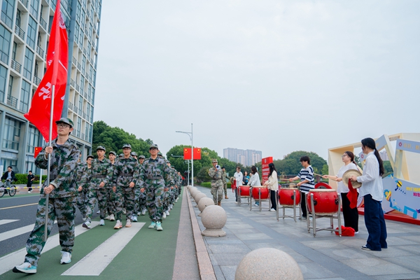 “思政第一课”吹响了拉练的号角,许慧霞宣布“可以出发”行军口令,2024级学生军训旅14个营90个连3269名学生闻令而动、戎装启程。校领导许慧霞、丁敢真,军训领导小组成员、全体军训教官、教导员随队前行,共同完成10公里徒步行军,为同学们保驾护航。